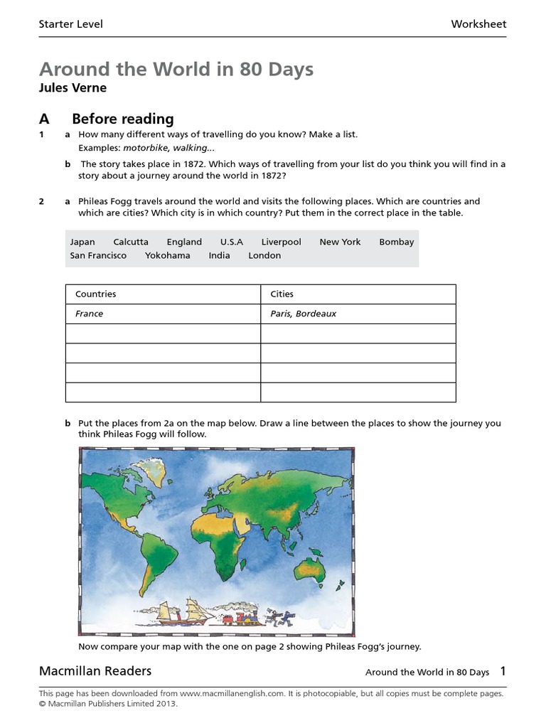 Around the World in 80Days Worksheet Around The World In Eighty Days